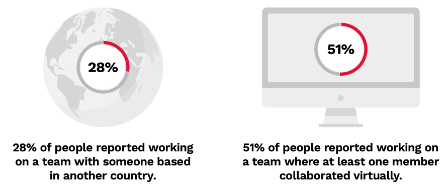 Moreover, their teammates are increasingly physically distant, which exacerbates the challenges of becoming successful teams. In the past year, 28% of respondents have worked with at least one member based in another country, and 51% have worked on teams with at least one member who collaborated virtually. As remote work proliferates in the era of COVID-19, however, we expect this number to have increased considerably.