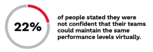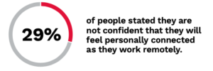 or mandated remote work, 22% of employees identified as not confident that their teams could maintain the same production and performance while working and collaborating virtually. And nearly a third (29%) indicated they are not confident that their team members will feel personally connected as they continue to collaborate virtually.